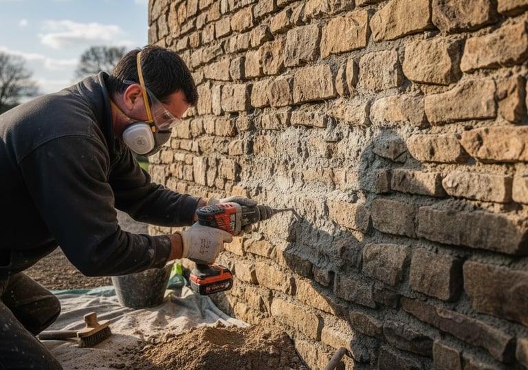 Montage de murs : en agglos et en pierres, mise en œuvre des matériaux nécessaires à la robustesse des bâtis